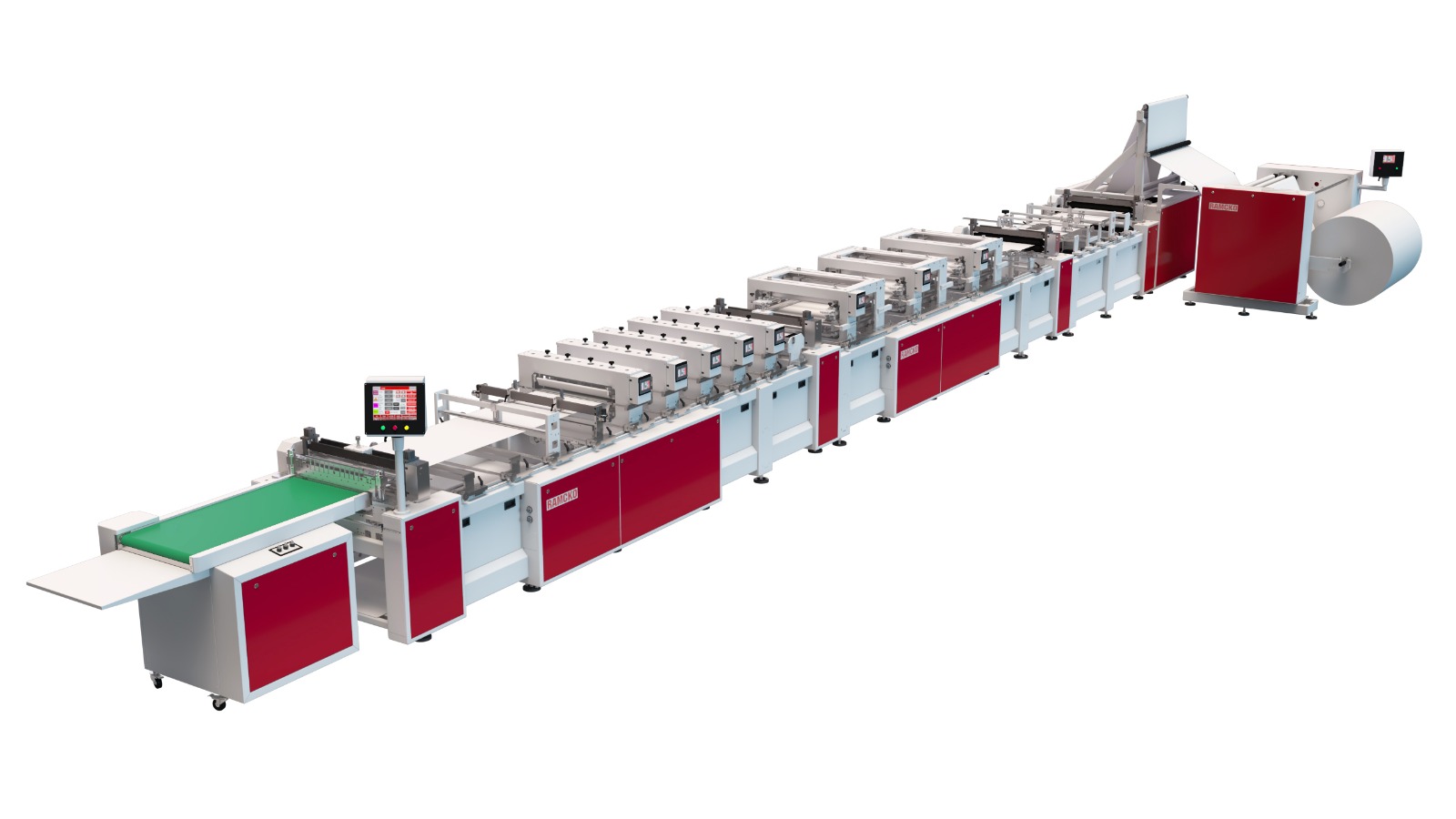 The FULL SERVO STANDUP POUCH MACHINE by RAMCKO MACHINERY is a high-speed, servo-driven system designed for precise pouch-making. It supports various pouch types, including zipper, vacuum, and recyclable formats, offering up to 200 cycles per minute with excellent sealing control and compatibility with multiple film types.